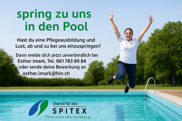 Zur Verstärkung unserer Teams suchen wir immer wieder motivierte und engagierte Pflegefachpersonen, Fachpersonen Gesundheit, Assistenten Gesundheit und Soziales sowie Mitarbeitende Haushilfe/Betreuung, die gerne anpacken und mitwirken. Wünschen Sie eine berufliche Veränderung? Dann melden Sie sich bei Esther Imark, Tel. 061 783 90 84 oder per Email: esther.imark@hin.ch.